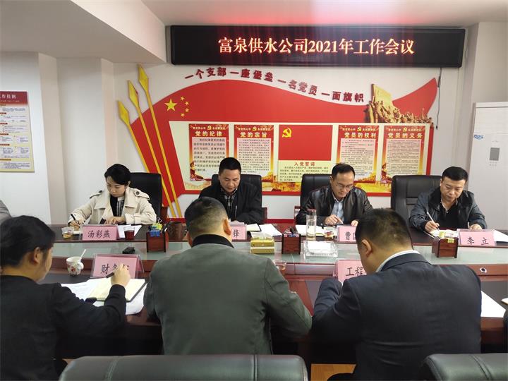 3月22日,富泉供水公司黨支部書記、執(zhí)行董事陳劍鋒主持召開2021年工作會議。會議對2020年工作進行了總結(jié),部署了2021年重點工作,團結(jié)和動員全體干部職工主動擔(dān)當(dāng)作為,奮力開啟公司“十四五”高質(zhì)量發(fā)展新征程。