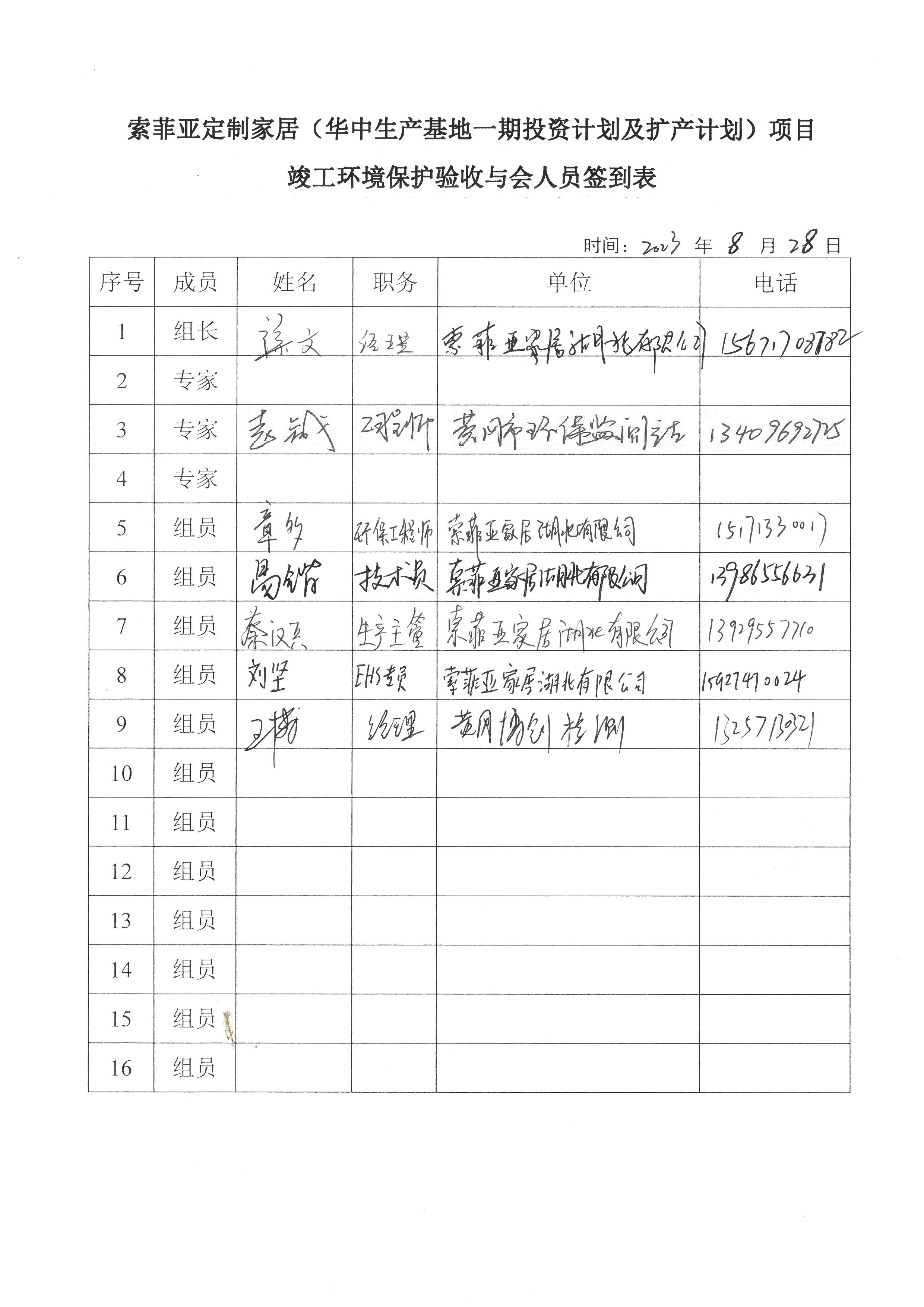 2023年8月28日,索菲亞家居湖北有限公司在黃岡市主持召開了《索菲亞定制家居(華中生產基地一期投資計劃及擴產計劃)項目竣工環(huán)境保護驗收監(jiān)測報告表》技術評估會。