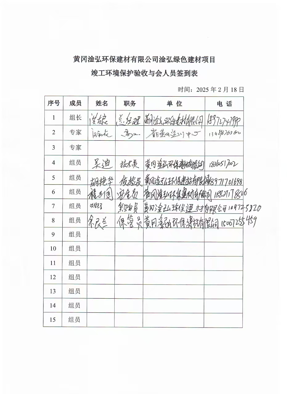 2025年2月18日,黃岡淦弘環(huán)保建材有限公司在黃岡市黃州區(qū)主持召開(kāi)了《淦弘綠色建材項(xiàng)目竣工環(huán)境保護(hù)驗(yàn)收監(jiān)測(cè)報(bào)告表》技術(shù)評(píng)估會(huì)。